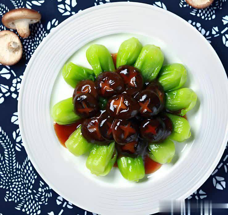 材料准备:新鲜香菇 200克;菜心 300克;蒜 2瓣;姜 2片;酱油 适量;盐 适量;料酒 适量;白胡椒粉 适量;橄榄油 适量;清汤或高汤 适量(可选)