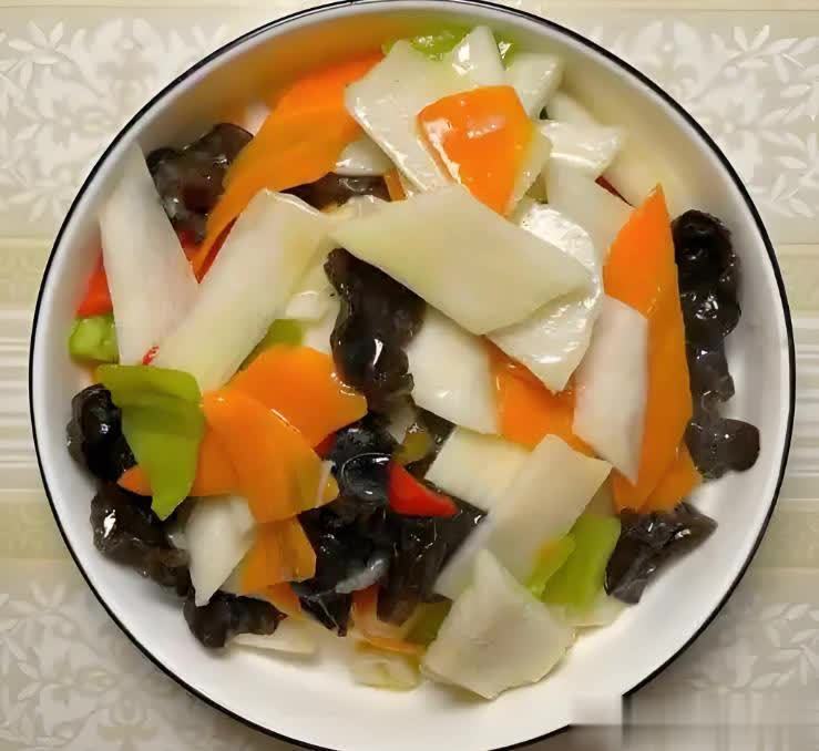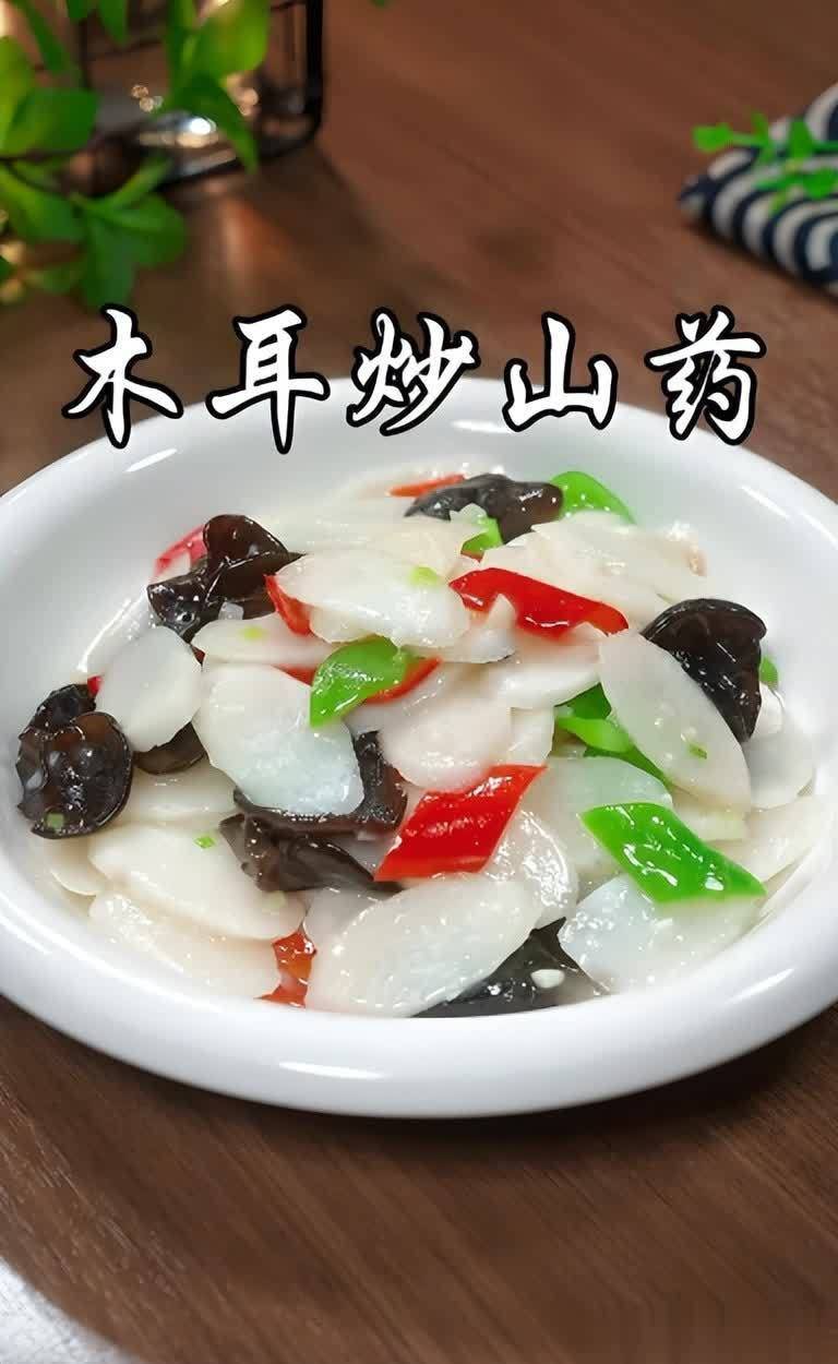5. 炒木耳和山药:先将泡发后的木耳放入锅中,炒至微微变软。然后加入山药片,翻炒均匀。